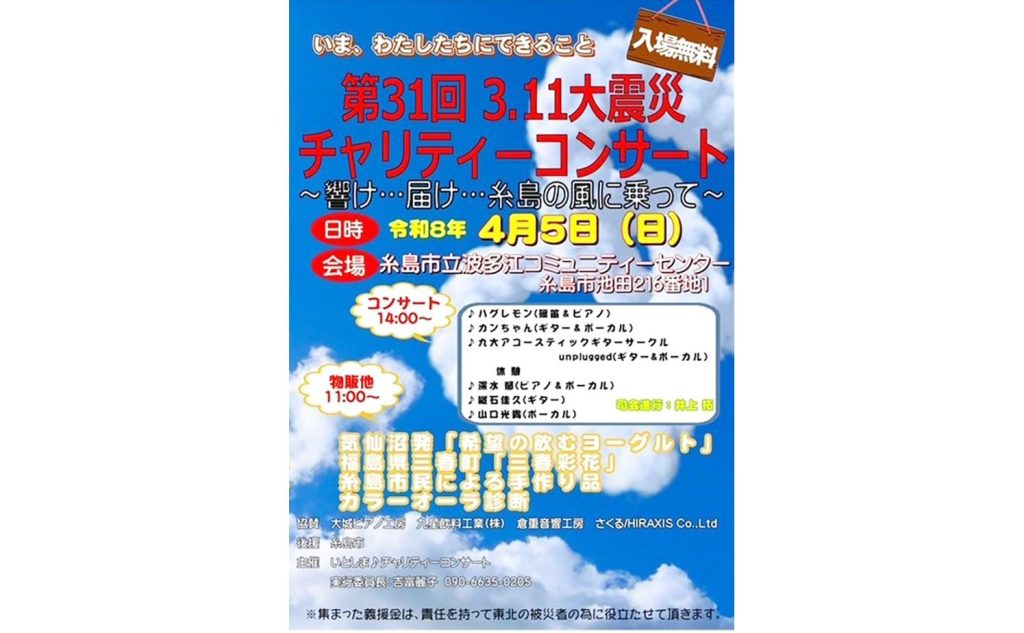 【糸島市】東日本大震災15年 チャリティー演奏会