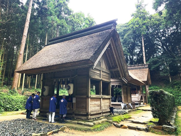 当日は朝から雨模様だったが、祭典の始まる頃には空も明るみ、しっとりと木々が香る境内に氏子たちが集い、厳粛な雰囲気の中で神事が執り行われた。