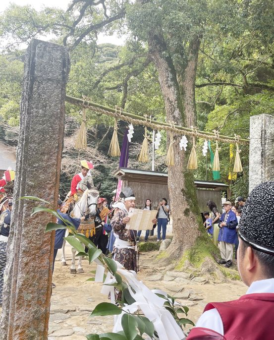 糸島市志摩の櫻井神社で18日、新米の収穫を神様に感謝する新嘗祭(にいなめさい)と、伝統の流鏑馬(やぶさめ)神事が執り行われ、境内は多くの参拝者でにぎわった。