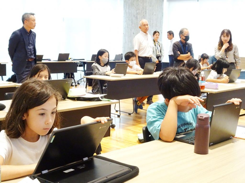 教育の重要性を再認識する「教育の日」の一環として毎年実施。問題は、小学校中学年版と同高学年版、中学生版の3パターンがあり、参加した子どもたちは「国宝にも指定された『日本一の大鏡』やアクセサリーが大量に出土した遺跡はどこでしょう」(小学校中学年版)など、郷土の歴史や文化、自然、産業に関する問題に頭をひねり、4つの選択肢から一つを選んでいた。