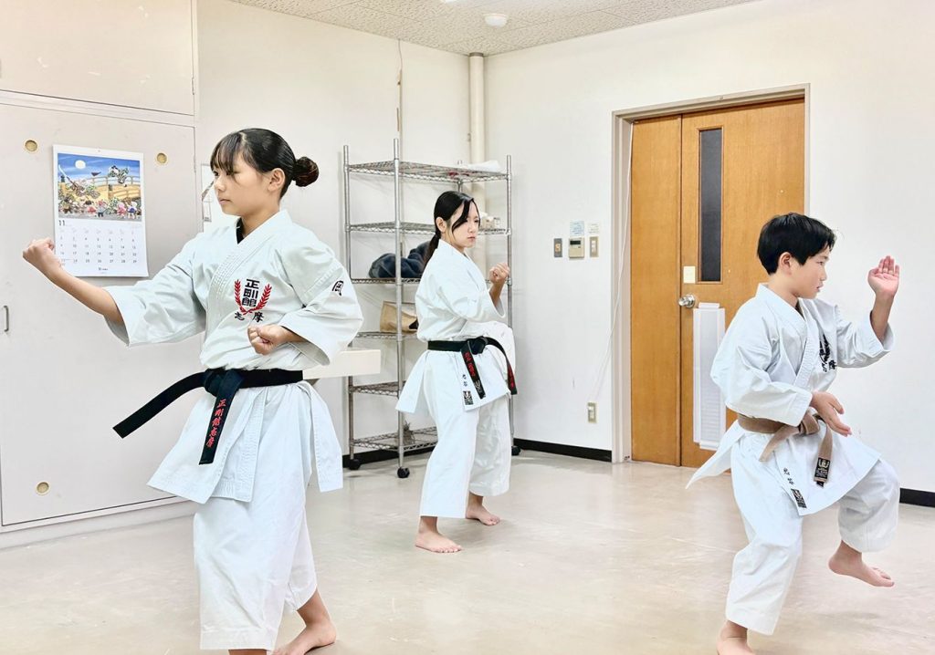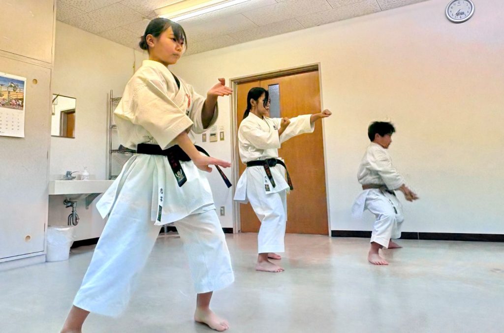 空手を始めたのは珠優音さんが5歳の時。その姿に憧れた弟妹2人も空手を始め、今では互いにアドバイスし合う関係だ。取材当日の練習でも「足!」「指、気をつけて!」と真剣な声が飛び交い、掛け声の中に互いを高め合うきょうだいの絆が見えた。