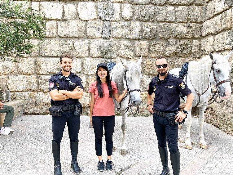 絵解き・北欧フィンランドにて。馬車など重い荷物を引く品種は体格がよく体重が重い スペインの街をパトロールする騎馬警察と。車や人混みにも慣れるよう訓練された馬たち