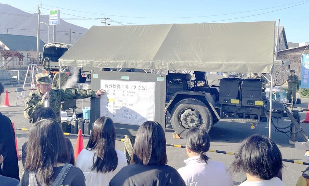 糸島市二丈の福吉コミュニティセンターで1月17日、「福吉校区避難所運営訓練-炊き出し編-」が実施された。陸上自衛隊福岡駐屯地からは炊事車や給水車が来場し、炊き出し訓練が行われた。