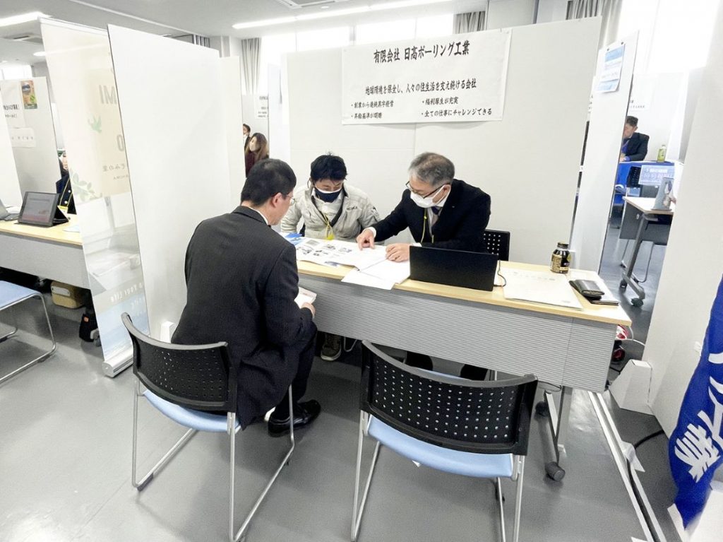 各社はそれぞれPRポイントをまとめブースを展開。参加者は会社の様子を聞くだけでなく、個人的な事情なども相談しながら、具体的な話を進めていた。