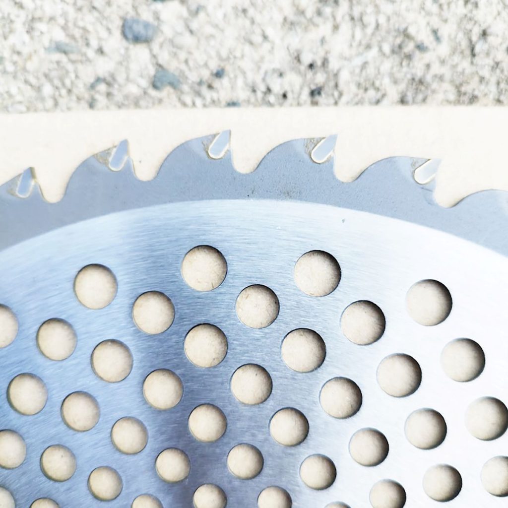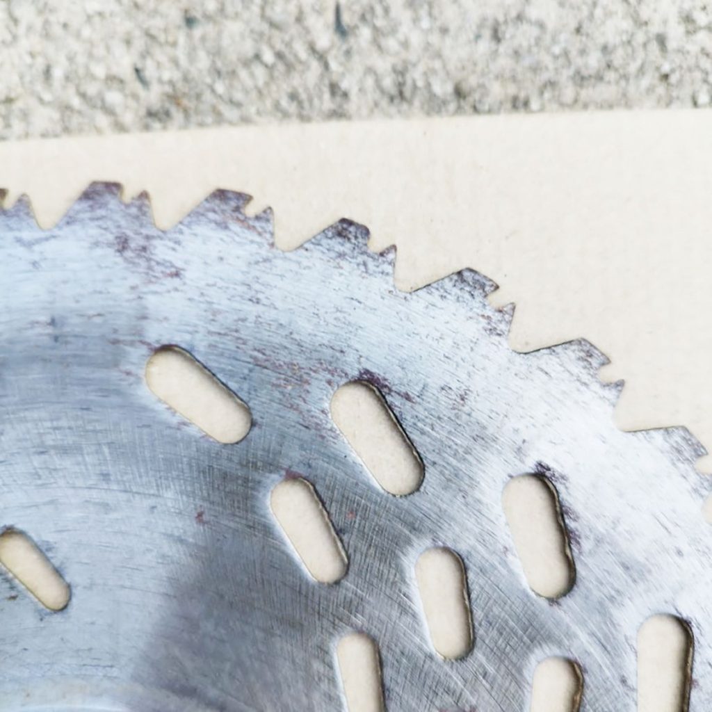 爪の交換を終えて、今度は草刈り機の刃研ぎを開始。摩耗した刃を変えずに草刈りをすると「草を刈り払うための力が余計に必要」「切り口がシャープでなく、ギザギザ状態で、草の伸びるのが早く感じる」など、せっかくの労力がもったいなくなります。ですから、使えそうな刃は研いで、再利用しています。