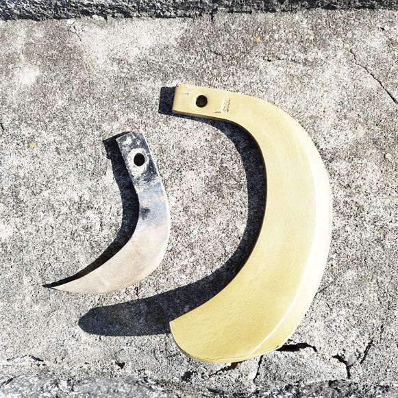 先月、実家のトラクターのロータリー爪があまりにもすり減っていたので、新品と交換しました。農業生産にとって、トラクターは重要な農機具。私は、お米栽培と研究用野菜栽培地の耕起などに使うくらいですから、爪の減り具合は少ないですが、米や麦、キャベツやブロッコリ-などの大規模生産者のトラクターは私の機械と違って、巨大で大きい爪がたくさんセットされています。爪の摩耗も相当だと推測します。