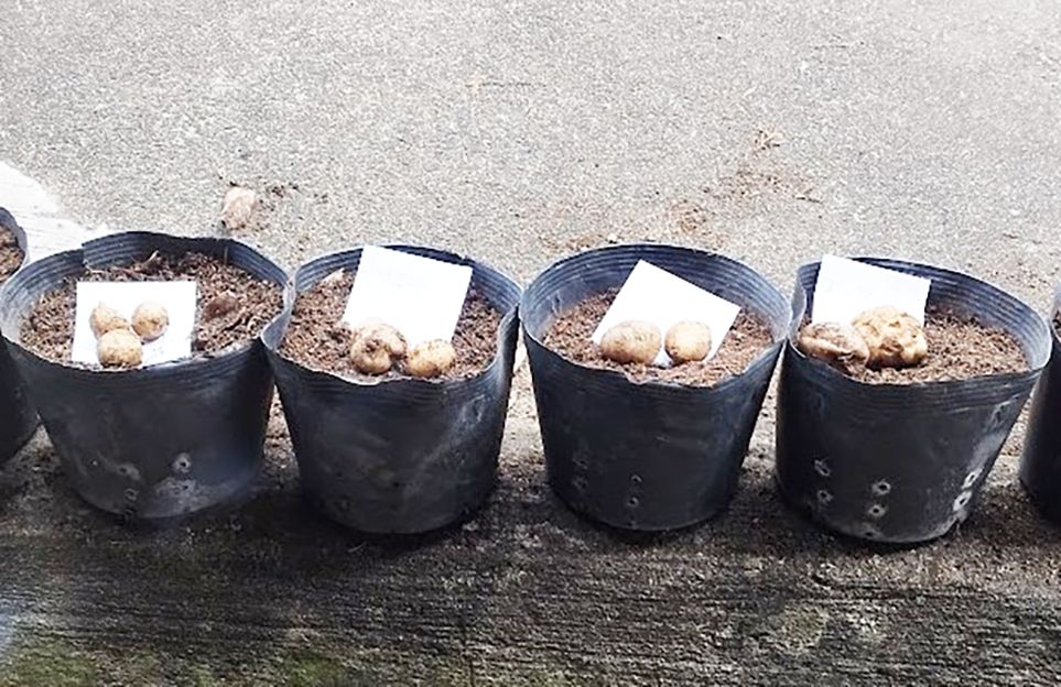 プランター栽培の方は、プランターごと霜が降りにくい車庫や玄関の軒先などに移動させ、霜を避けてください。ちなみに、私は昨年、秋作になりますが、土壌試験目的で、大きめの丸プランターで栽培してみました。霜とは無縁な時期ですが、プランターでもしっかりバレイショが栽培できました。