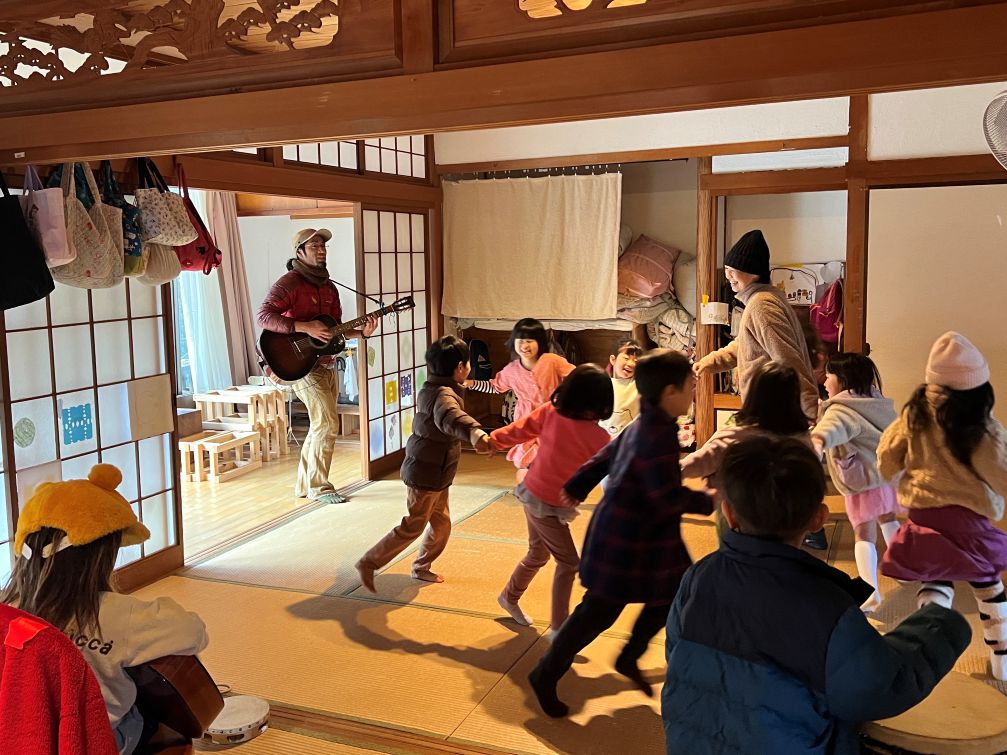 自然豊かな二丈波呂の「子ども園まほろば」では、園児15名が開放的な日々を過ごしている。園長の矢野央允(なかみつ)さん(43)は「子どもがありのままの自分で感じ、考え、育ち合う環境を取り戻したい」との思いで園を開いた。子どものやりたいという意思を起点にするため、1日の過ごし方はその日の朝に全員の意見を聞き話し合いで決める。
