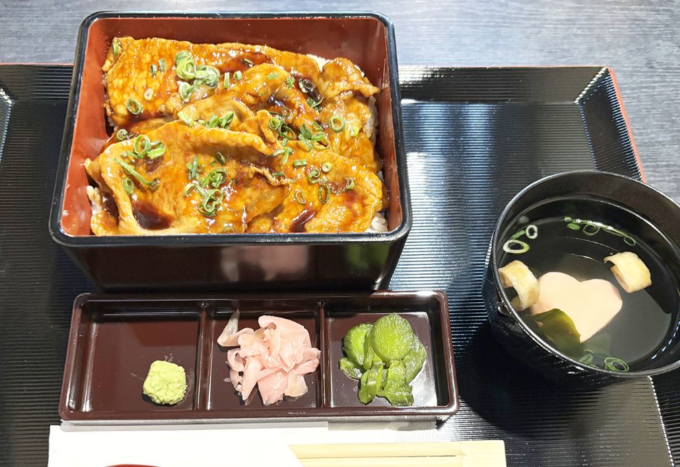 看板メニューは「くせになるぶた丼」(お吸い物付1,200円)。国産豚のうまみ豊かな肩肉を使い、肉の脂を生かしながら丁寧に焼き上げる。柔らかな肉がご飯を覆うように重なり、食べ応えも十分。「ご飯が見えないくらい、お肉たっぷりにしたくて」と赤司さんは笑う。甘めのたれにショウガを効かせた味わいで、ご飯との相性も抜群だ。