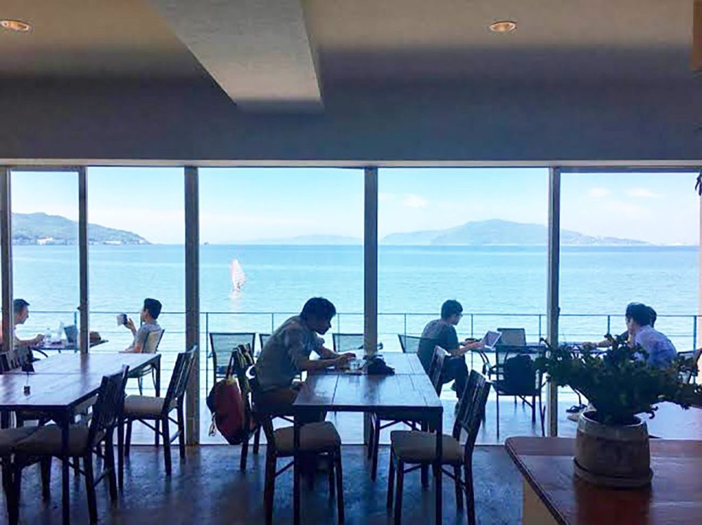-SALTは、今津湾の美しい景色が望める7階建のビルで、ワークスペースやレンタルスペース、スモールオフィス、ラウンジなどを貸しておられますね。ワークスペースは、利用者が空間を共有するコワーキングスペースになっているそうですね。