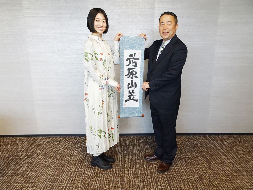小川さんは小学生の頃、地元である筒井町の山笠に参加していた。現在、父・俊秀さんも同会役員を務めている縁もあり、今回寄贈を快諾。「私の地元前原の祭りに、書を通じて貢献できるのはとてもうれしい。この文字が、祭りを支える皆さんの力になれば」と思いを語った。