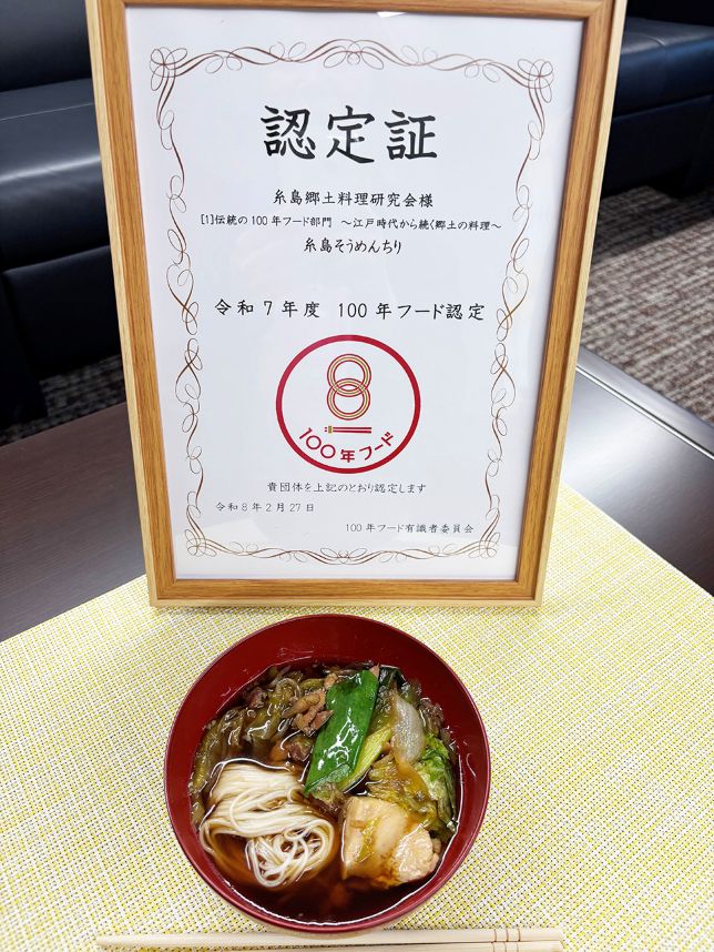 糸島の郷土料理「糸島そうめんちり」が、文化庁が進める食文化継承の取り組み「100年フード」で、2025年度の「伝統の100年フード部門(江戸時代から続く郷土の料理)」に認定された。ハレの日のごちそうとして親しまれてきたそうめんちりが、未来に残すべき食文化として改めて認められた。