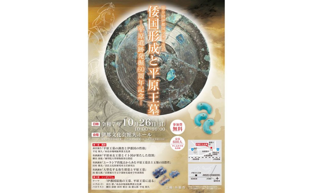 26日、伊都国フォーラム 専門家が多角的に 伊都国の王墓として知られる平原遺跡の発掘から60年を記念し、第9回伊都国フォーラム「倭国形成と平原王墓」が26日午前10時から、伊都文化会館大ホールで開かれる。国宝の内行花文鏡をはじめ、最新研究で明ら... -