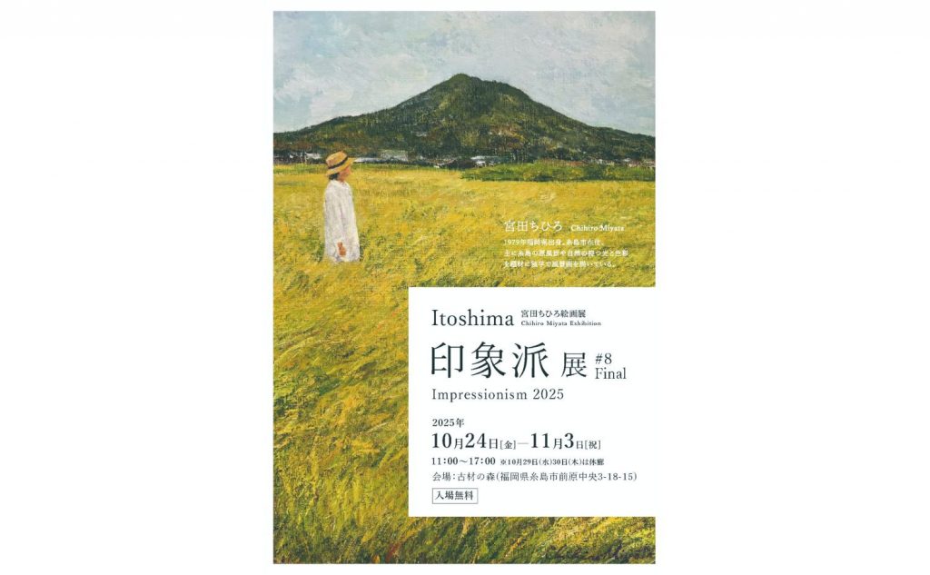 糸島市在住の画家・宮田ちひろさんの個展「Itoshima印象派展ファイナル」が24日から11月3日まで、糸島市前原中央の「古材の森」で開かれる。2018年に始まり、今回が8回目。宮田さんは当初から「モネたちの印象派展にならい、8回で終わりにする」と決... -