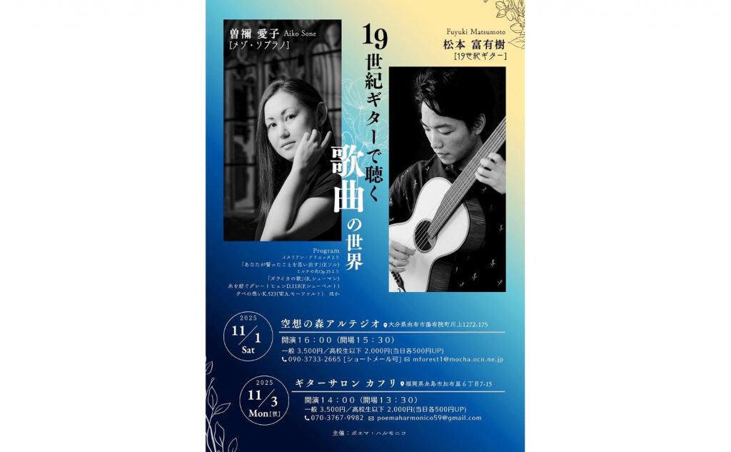 【糸島市】19世紀ギターと歌曲 加布里でコンサート