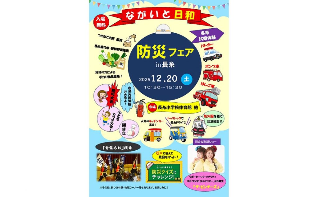 自然豊かな長糸の魅力をPRしようと、「ながいと日和 冬まつり~防災フェアin長糸~」(長糸校区運営委員会主催)が20日、糸島市の長糸コミュニティセンターと長糸小で開かれる=写真はチラシ。 イベントは、長糸小の児童数増加を図る「小規模特認校」... -